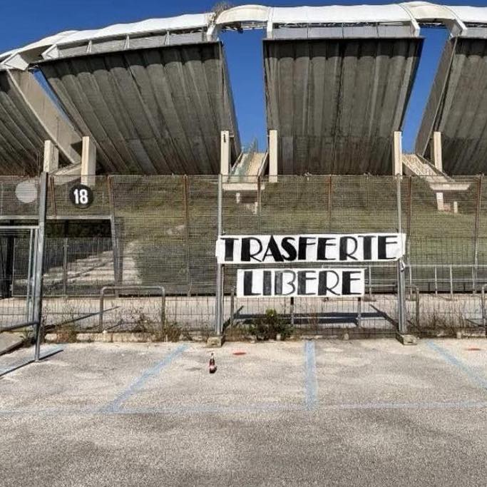 Manca sempre meno al fischio d’inizio di Bari-Palermo. I rosanero arrivano in Puglia con l’intento di confermare gli ottimi risultati utili consecutivi maturati nelle ultime partite. Al San Nicola, però, non ci saranno i tifosi rosanero (con il settore ospiti chiuso). I supporters siciliani sono comunque arrivati in Puglia e e hanno affisso questo striscione nei pressi del settore ospiti di Bari: “Trasferte libere”.