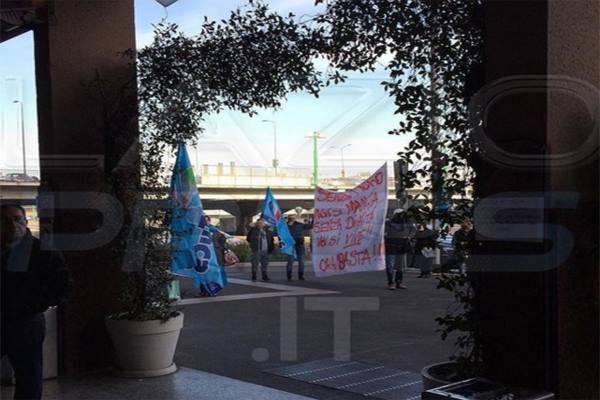 Curiosità: fuori dall’Atahotel Executive, sede del calciomercato, protesta dei lavoratori dello stesso albergo (FOTO)