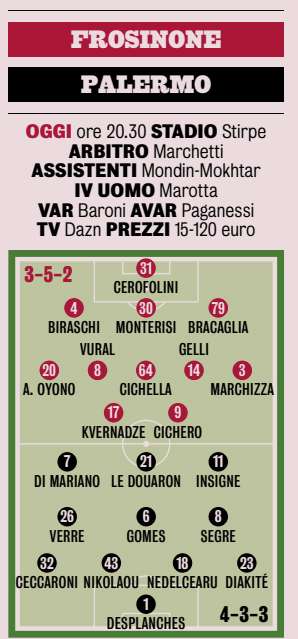 Gazzetta dello Sport: “Frosinone-Palermo, le probabili formazioni”