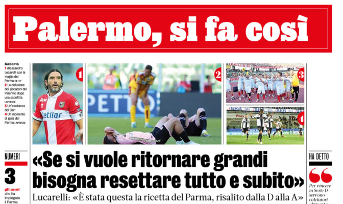 L’edizione odierna della “Gazzetta dello Sport” riporta le parole dell’ex rosanero Alessandro Lucarelli, capace di riportare il Parma nel calcio che conta come capitano e che oggi è un dirigente dei ducali. La situazione che stanno vivendo i rosanero è simile a quella del club crociato, che è ripartito grazie a gli imprenditori locali, proprio come potrebbe accadere al Palermo con Dario Mirri. Ecco le parole di Lucarelli: «Per noi c’era l’amarezza per un danno fatto da altri. A quel punto bisogna resettare tutto e cercare di ripartire da un senso di appartenenza che deve accomunare società, squadra e tifosi». Riguardo alla serie D, poi, Lucarelli ha spiegato: «Per vincere il campionato di Serie D servono sicuramente calciatori abituati a quel tipo di torneo. Tutti contro di noi hanno fatto la partita della vita e ci vogliono giocatori pronti ed esperti. Un giusto mix di esperti e giovani può fare la differenza». Guai però a correre: «Non bisogna pensare subito ad arrivare in Serie A, ma ragionare passo dopo passo, con un obiettivo da porsi all’inizio di ogni stagione. Pensare – conclude Lucarelli all’obiettivo finale può toglierti energie».