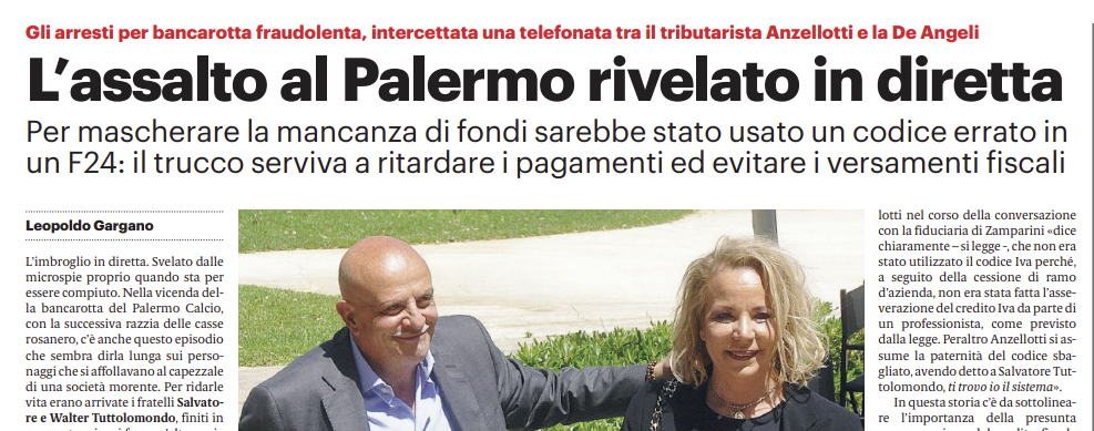 Gds: “Gli arresti per bancarotta fraudolenta, intercettata una telefonata tra il tributarista Anzellotti e la De Angeli. L’assalto al Palermo rivelato in diretta”