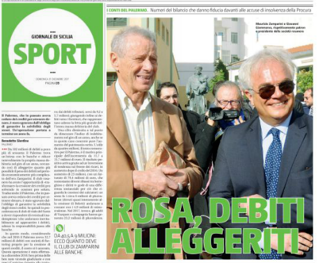 Giornale di Sicilia: “Palermo, debiti alleggeriti. Ecco quanto deve il club alle banche”