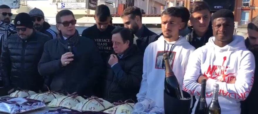 «Vorrei che lo stadio domenica si riempisse e vi ringrazio per la calorosa presenza di oggi. Auguri di ottima fine e di prospero inizio. Senza fare proclami, ma camminiamo a testa alta con tanta umiltà, senza montarci la testa. Stando vicini alla squadra possiamo raggiungere grandi obiettivi». Queste le parole del presidente Mazzamauro, riportate nel video di “SoloSavoia.it”. Di seguito il video: