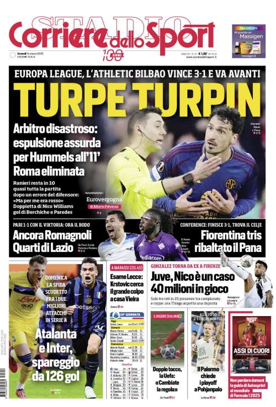 Prima pagina Corriere dello Sport: “Il Palermo chiede i playoff a Pohjanpalo”