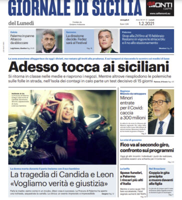 La prima pagina dell’edizione odierna del “Giornale di Sicilia” si sofferma sul primo giorno di zona arancione in Sicilia.