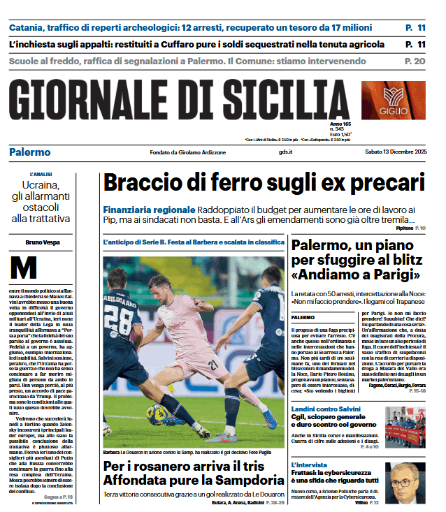 Giornale di Sicilia: “Il Palermo non sbaglia. Le Douaron piega la Samp”