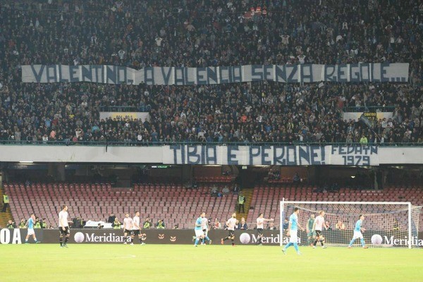 Nel corso del match tra Napoli e Palermo, la Curva B ha esposto uno striscione in favore di Valentino Rossi,...