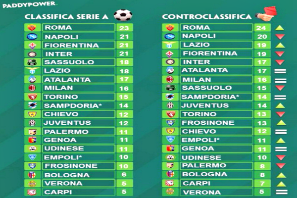 L'agenzia di scommesse onilne PaddyPower.it ha stilato una speciale classifica del campionato di serie A, senza presunti errori da parte...