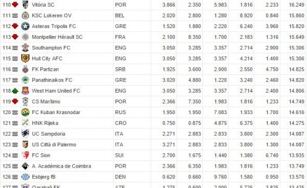 E' stato aggionato anche il Ranking Uefa per club: una posizione in meno per il Palermo che dal 122° posto...