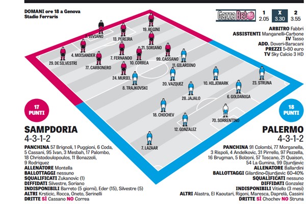 L'edizione odierna de "La Gazzetta dello Sport" analizza il momento in casa Sampdoria, prossima avversaria del Palermo. Ecco come arriva...