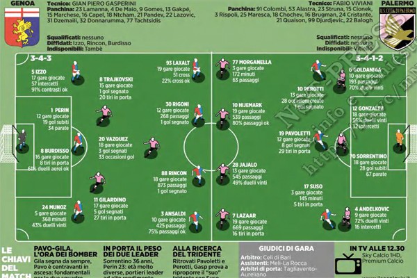 L'edizione odierna de "Il Secolo XIX" ha stilato le probabili formazioni che all'ora di pranzo scenderanno in campo nel match...