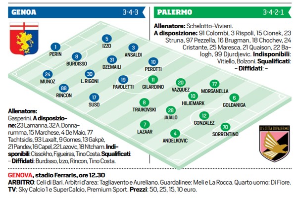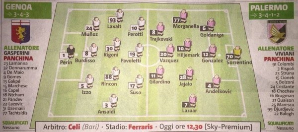 L'edizione odierna de "Il Corriere dello Sport" ha stilato le probabili formazioni del match tra Genoa e Palermo in programma...
