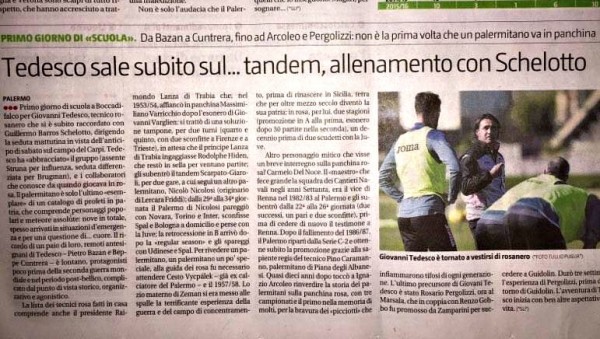 Giornale di Sicilia: “Tedesco sale sul tandem con Schelotto, non è la prima volta che un palermitano va in panchina…”