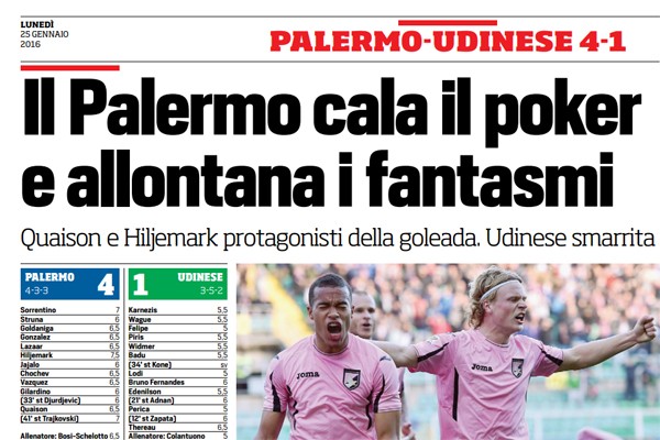L'edizione odierna de "Il Corriere dello Sport" ha stilato le pagelle dei rosanero dopo il match vinto contro l'Udinese, ecco...