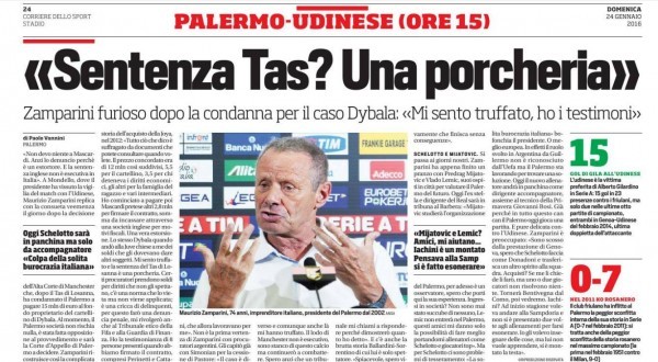 Tuttosport: “Zamparini accusa: «Iachini un vigliacco, voleva l’esonero per andare alla Samp», il tecnico agisce per vie legali…”