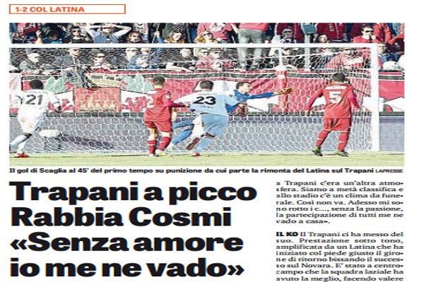 "Serse Cosmi è una maschera di rabbia. «Si fa fatica a commentare una partita così. Al di là di tutto,...