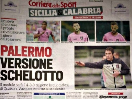 Nasce il Palermo versione Schelotto, come riporta "Il Corriere dello Sport": "Il nuovo modulo sarà un 4-3-3, salgono le quotazione...