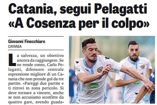"La salvezza, un obiettivo ancora da raggiungere. Se ne rende conto, Carlo Pelagatti, difensore centrale espressione migliore di un Catania...