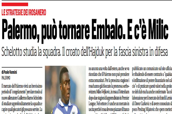 Corriere dello Sport, mercato Palermo: “Può tornare Embalo, Struna in uscita. Veljkovic bloccato per la prossima stagione…”