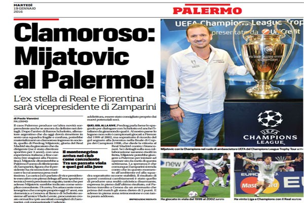 "Il caos Palermo produce un'altra novità sorprendente anche se ancora da definire nei dettagli. Dopo l'arrivo di Barros Schelotto, allenatore...