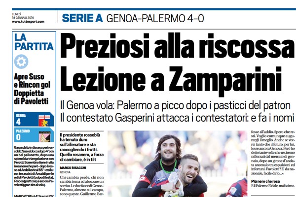 "Chi cambia perde, chi non cambia torna ad abozzare un sorriso. Le due facce di Genoa-Palermo, almeno sul campo, sono...