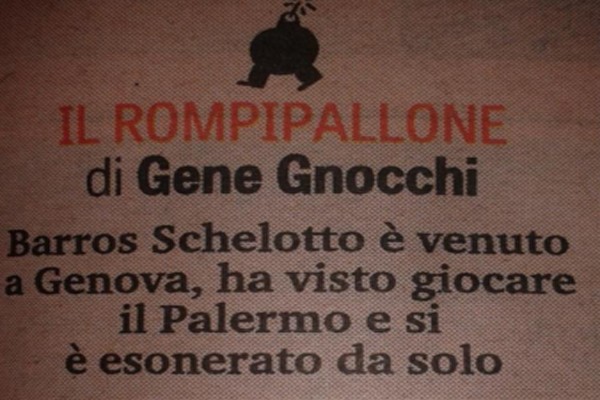 Dopo la pesante sconfitta rimediata dai rosanero ieri a Genova, non manca l'ironia di Gene Gnocchi, che questa mattina sul...