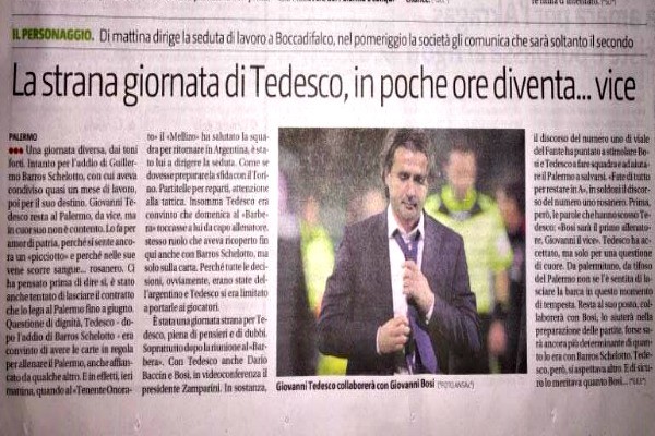 “Una giornata diversa, dai toni forti – si legge sull’edizione odierna de “Il Giornale di Sicilia” – Giovanni Tedesco resta...