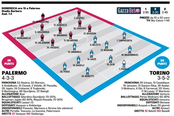 L'edizione odierna de "La Gazzetta dello Sport" ha stilato le probabili formazioni del match che il Palermo disputerà contro il...