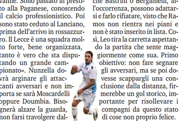 "Ben 48 gare in due stagioni, dal 2010 al 2012 nel vivaio del Lecce. Leo Nunzella ritrova il suo passato...