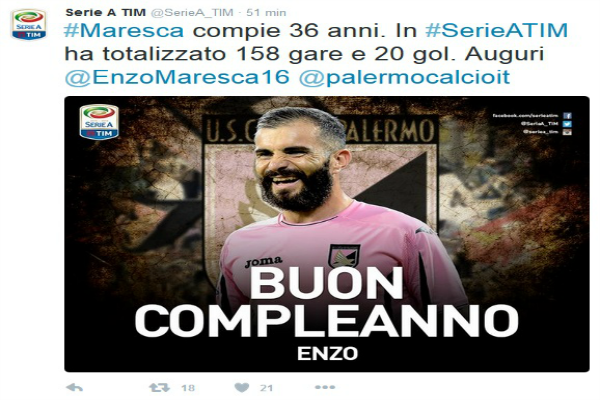 Attraverso il proprio profilo Twitter la Lega Serie A, fa gli auguri di buon compleanno ad Enzo Maresca, il centrocampista...
