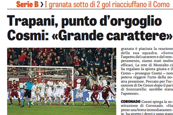 "La rimonta da 0-2 a 2-2 è sempre un’impresa. Lo sa bene il Trapani, che ha dovuto faticare moltissimo per...