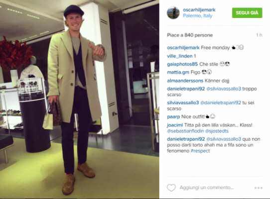Il centrocampista svedese in forza al Palermo, Oscar Hiljemark, ha pubblicato sul proprio profilo Instagram questa foto: Free monday Una...