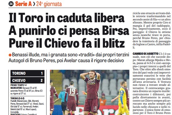 "La malattia del Torino è ormai conclamata. Gli esami danno risultati sconfortanti: primo successo del Chievo in casa dei granata,...