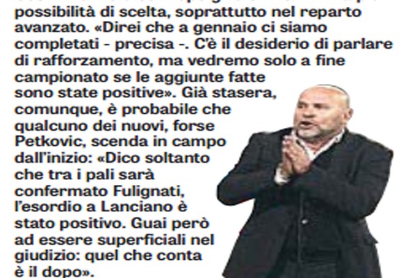"«È Carnevale? Non mi aspetto scherzi dai miei giocatori, sebbene vigilia di martedì grasso». Così Serse Cosmi aspettando stasera (ore...