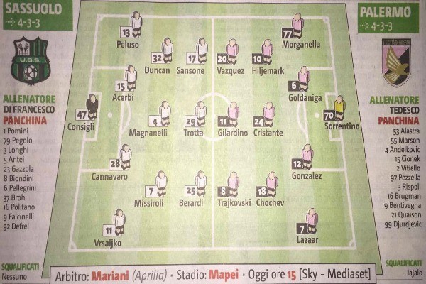 Giornale di Sicilia: “Le probabili formazioni di Sassuolo-Palermo. Rilancio Trajkovski”
