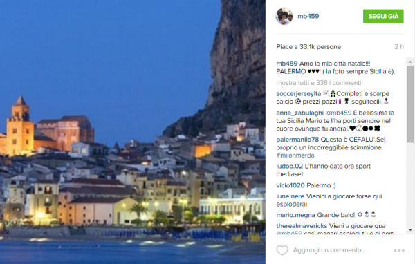 L'attaccante del Milan, Mario Balotelli, ha pubblica sul proprio profilo Instagram una foto con allegato un messaggio di amore nei...