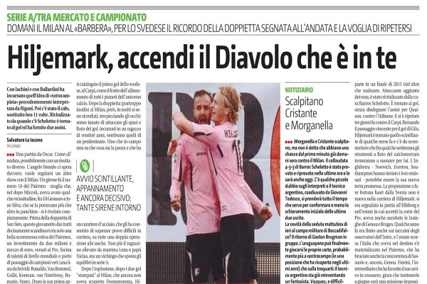 L'edizione odierna del quotidiano "La Repubblica" si sofferma sul match in programma domani sera tra Palermo e Milan allo stadio...