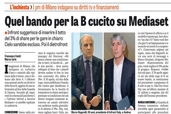 "I magistrati di Milano, che indagano su turbativa d’asta e ostacolo alla vigilanza della Covisoc, non si fermano alla Serie...