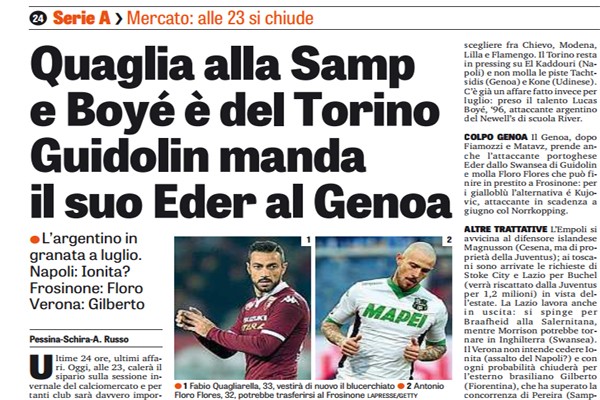"Ultime 24 ore, ultimi affari. Oggi, alle 23, calerà il sipario sulla sessione invernale del calciomercato e per tanti club...