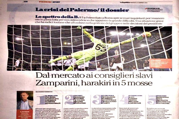 “Il 5-0 rimediato a Roma apre scenari inquietanti per i rosanero ora in piena lotta per non retrocedere e che...