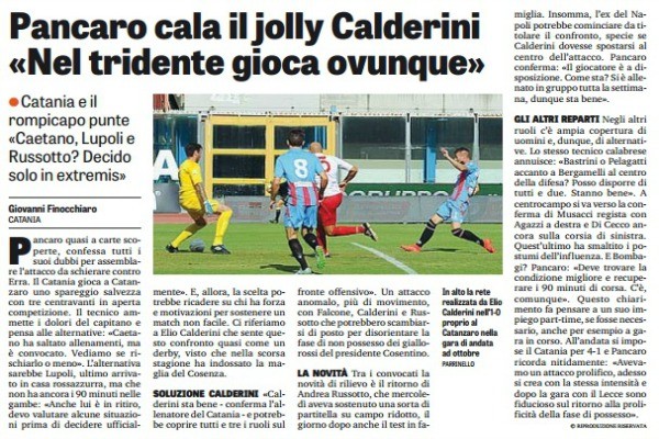 "Catania e il rompicapo punte «Caetano, Lupoli e Russotto? Decido solo in extremis». Pancaro quasi a carte scoperte, confessa tutti...