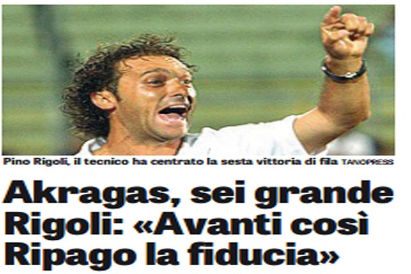 "La forza dell’Akragas è scritta nei numeri. 6a vittoria consecutiva, 18 punti ed un solo gol subito da quando Rigoli...