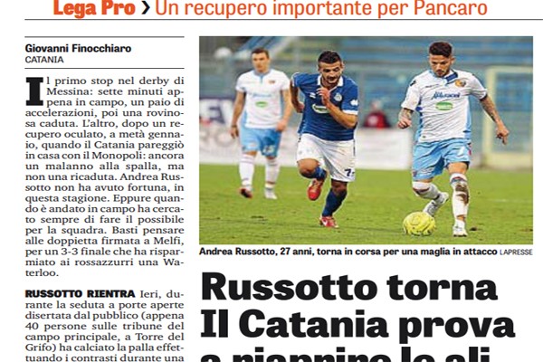 "Il primo stop nel derby di Messina: sette minuti appena in campo, un paio di accelerazioni, poi una rovinosa caduta....