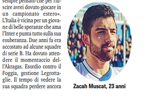 "Da un’isola all’altra con l’idea fissa del calcio italiano. Da Malta alla Sicilia per realizzare un sogno giovanile. Zacah Muscat...