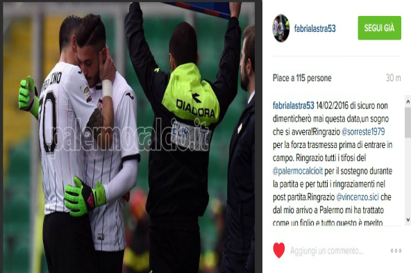 Attraverso il proprio profilo Instagram Fabrizio Alastra ha così voluto ringraziare i tifosi, ma non solo, dopo l'esordio in serie...