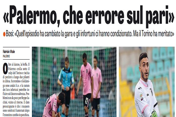"Oltre al danno, la beffa. Il Palermo crolla sotto il colpi del Torino e rischia di perdere a lungo due...