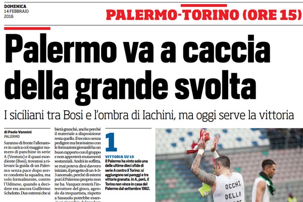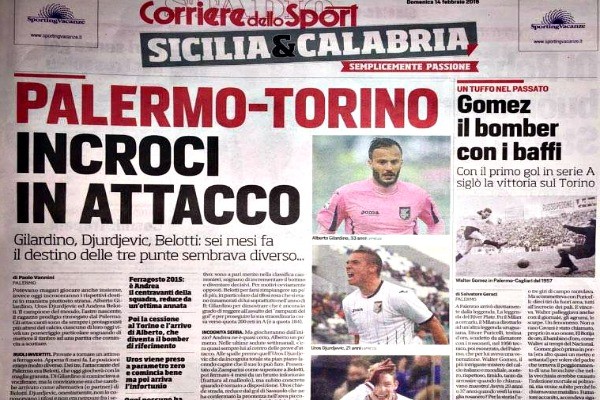 Corriere dello Sport: “Palermo-Torino, incroci in attacco”