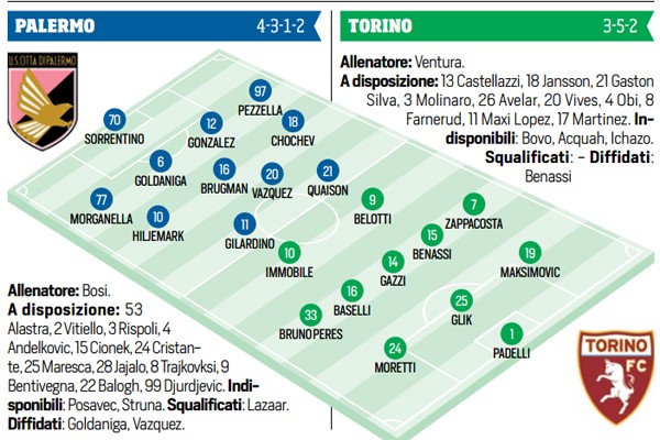 L'edizione odierna de "Il Corriere dello Sport" ha stilato le probabili formazioni di Palermo-Torino. Cambio di modulo per Bosi, che...