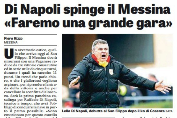 "Un avversario ostico, quello che arriva oggi al San Filippo. Il Messina dovrà misurarsi con una Paganese reduce da tre...