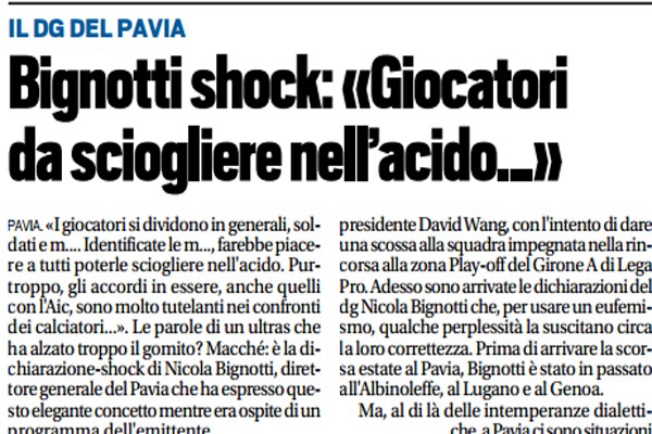 "«I giocatori si dividono in generali, soldati e m.... Identificate le m..., farebbe piacere a tutti poterle sciogliere nell'acido. Purtroppo,...
